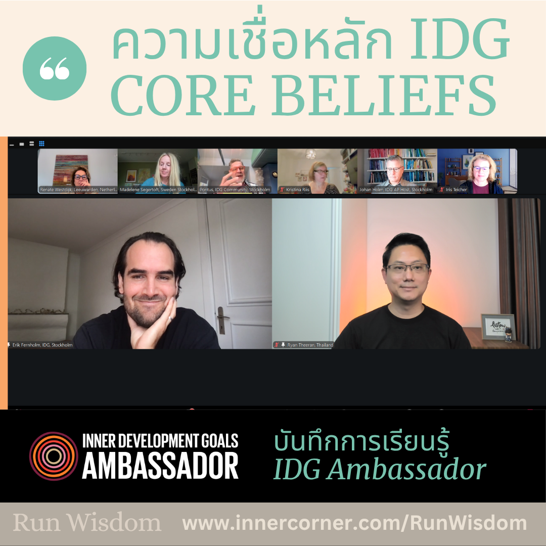 งานเขียนนี้ คือ บันทึกการเรียนรู้ของ ดร. ธีรัญญ์ ไพโรจน์อังสุธร ในโปรแกรม The IDG Ambassador ที่ Session ที่เรียนรู้กับ Erik Fernholm ผู้ร่วมริเริ่ม IDG และผู้ก่อตั้ง The 29K Foundation เนื้อหาเกี่ยวกับหลักการของการพัฒนาด้านใน (Inner Development) ทั้งในแง่ของความเชื่อหลักที่ขับเคลื่อนโครงการริเริ่ม IDGs (Inner Development Goals) และบริบททางประวัติศาสตร์ที่สนับสนุนแนวคิดนี้